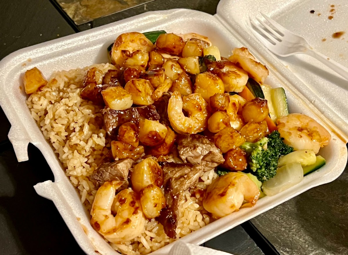 Came in during lunch hour, ordered, got my to go food in less than 10 minutes. Hibachi shrimp is my go to, the teriyaki isnt as good I'd say. Taste good and prices are reasonable.